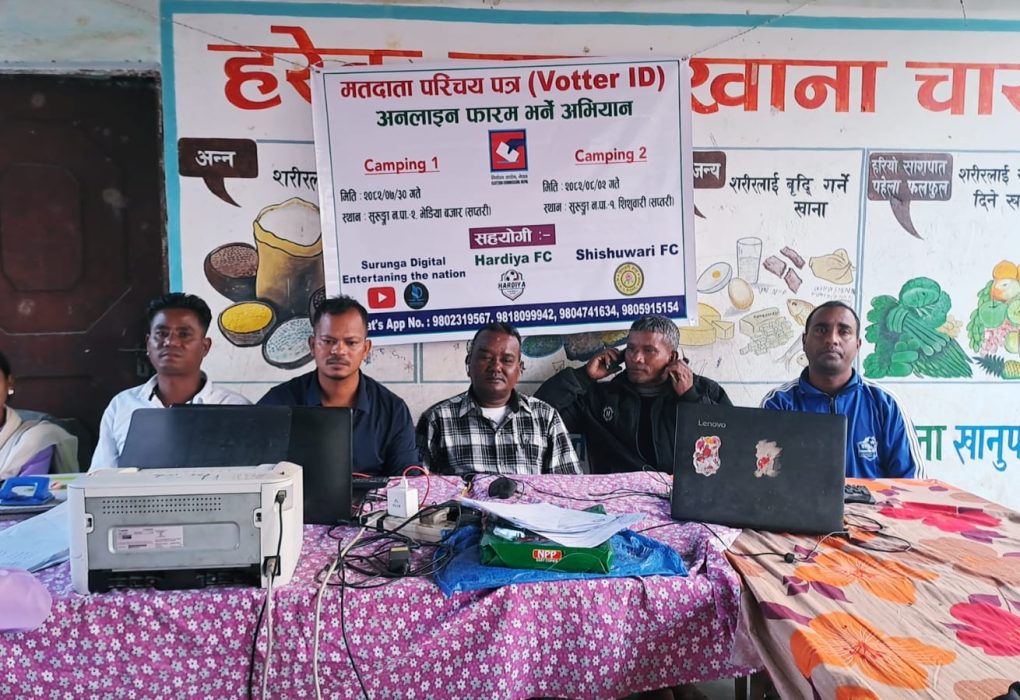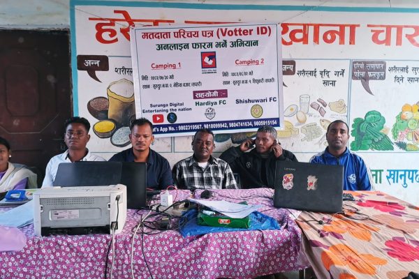 समता सम्बादाता भेडीया, १ – मङ्सिर। सुरुङ्गा डिजिटल, हर्दिया एफ.सी. र शिशुवारी एफ.सी. को संयुक्त आयोजनामा भएको मतदाता परिचयपत्र दर्ता तथा जानकारी अभिमुखीकरण क्याम्प शनिबार सुरुङ्गा नगरपालिका २ न. वडा भेडिया बजारमा सम्पन्न भएको छ। क्याम्पमा एकै दिन १००० भन्दा बढी सर्वसाधारणको उपस्थिती रहेको आयोजकले जानकारी दिएका छन्। तीमध्ये २०० जनाले तत्कालै फारम भरेर मतदाता…